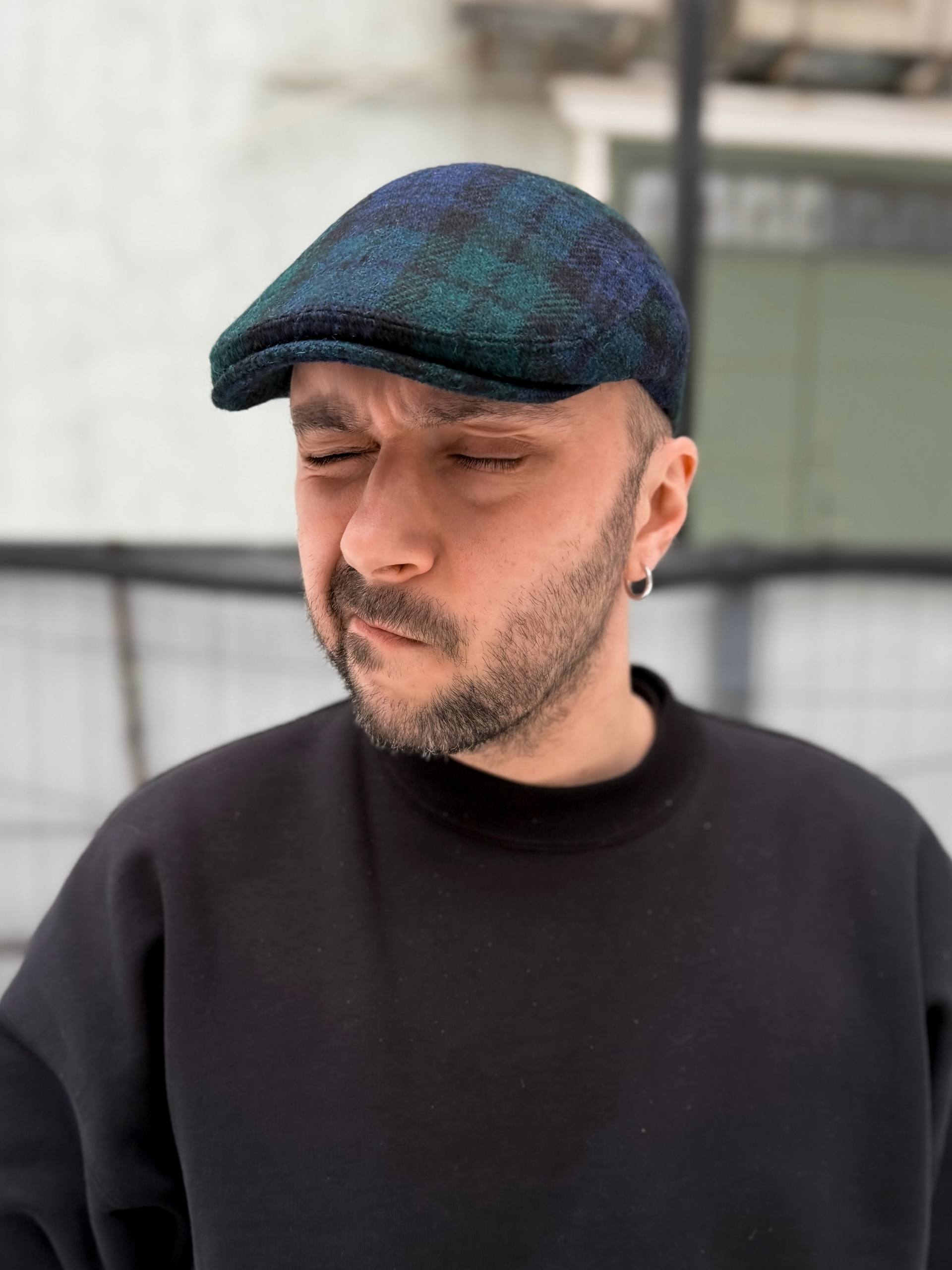 Флэт кап Sam Greywool из твида от Harris Tweed в классическую клетку-тартан Black Watch